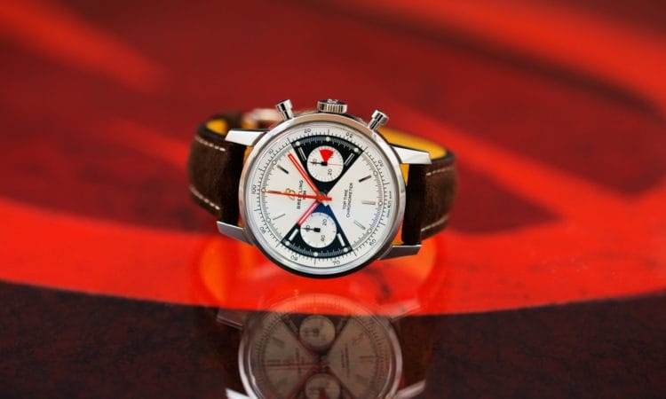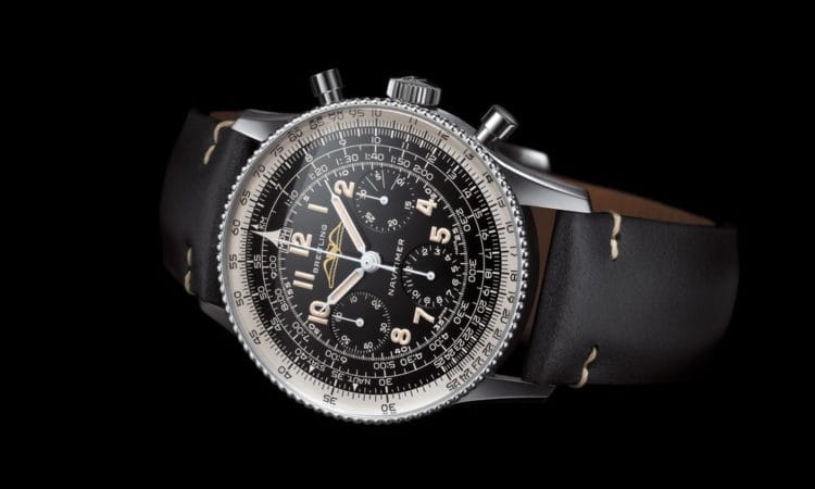 En 1940, Breitling lance le Chronomat, première montre chronographe équipée d’une règle à calcul circulaire logarithmique. Puis en 1952, elle crée, en partenariat avec l’Association des pilotes et des propriétaires d’avion (AOPA), le Navitimer, chronographe-bracelet permettant tous les calculs de vols, aujourd’hui devenu culte. Si sa règle à calcul circulaire permettant d’effectuer l’ensemble des opérations en navigation aérienne contribue à son essor, elle entre dans la légende grâce à Scott Carpenter. En effet, lors de son vol orbital à l’intérieur de la capsule Aurora 7 en 1962, il porte une Navitimer au poignet, faisant de ce garde-temps, le tout premier chronographe-bracelet dans l’espace.