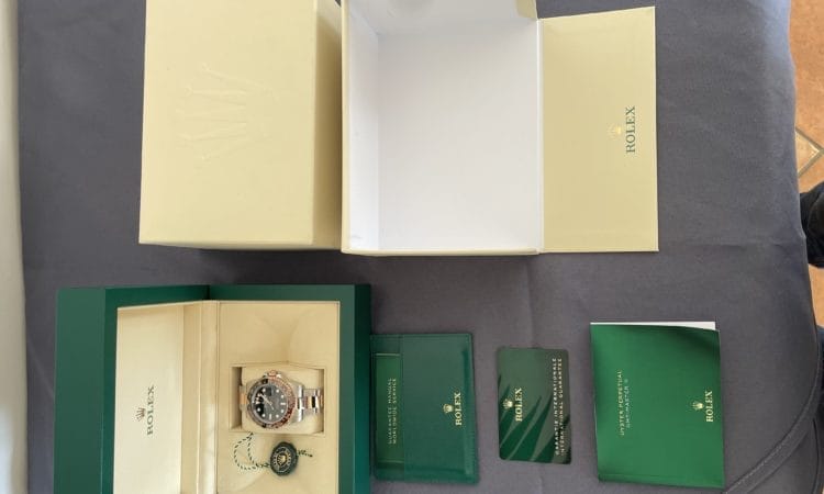 Je vend une montre Rolex, modèle GMT Master II Rolesor Everose. Je l’ai acheté neuve chez un revendeur officiel de la marque en mars 2024. Elle n’a jamais été portée. Je possède la facture d’achat à mon nom, la carte d’identification, la boîte et sur boîte, ainsi que les diverses notices d’emploi.