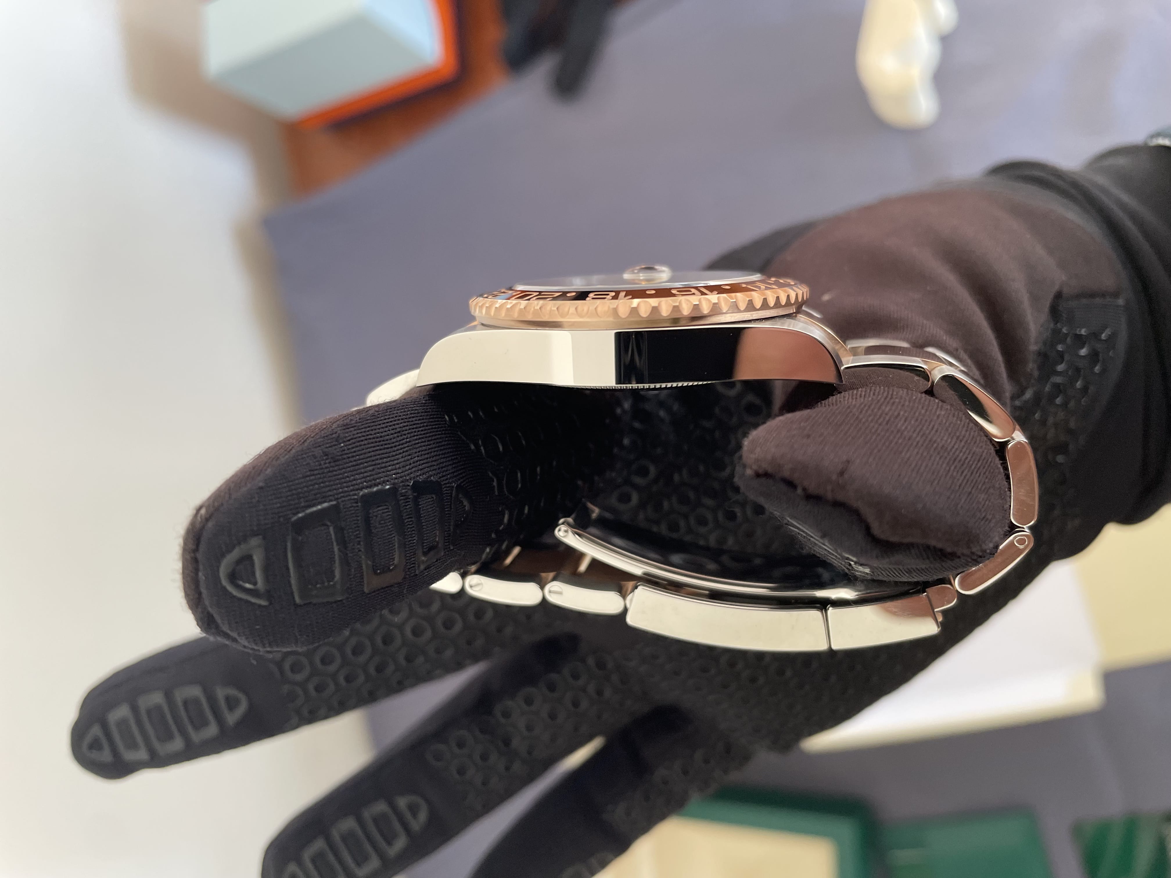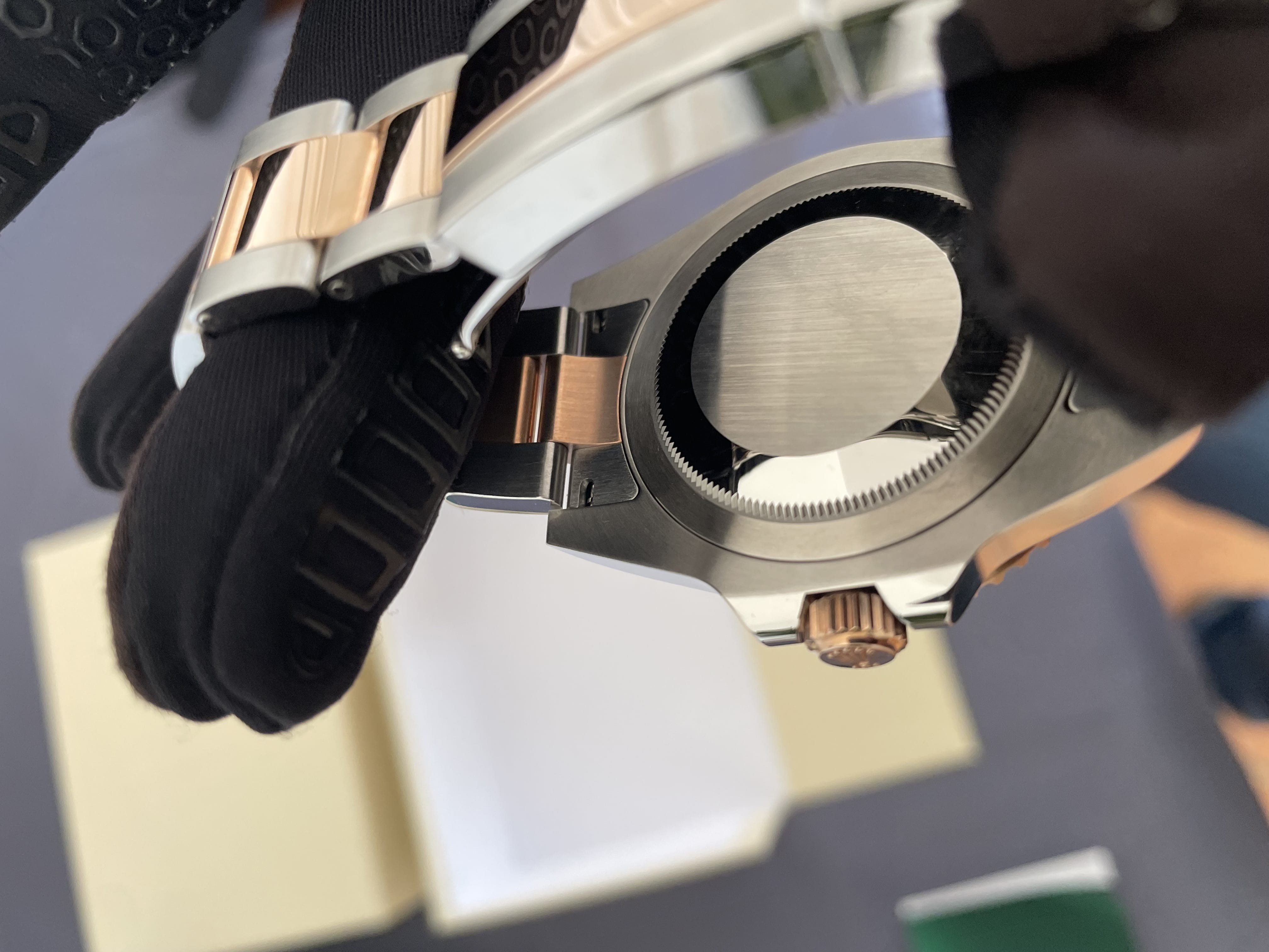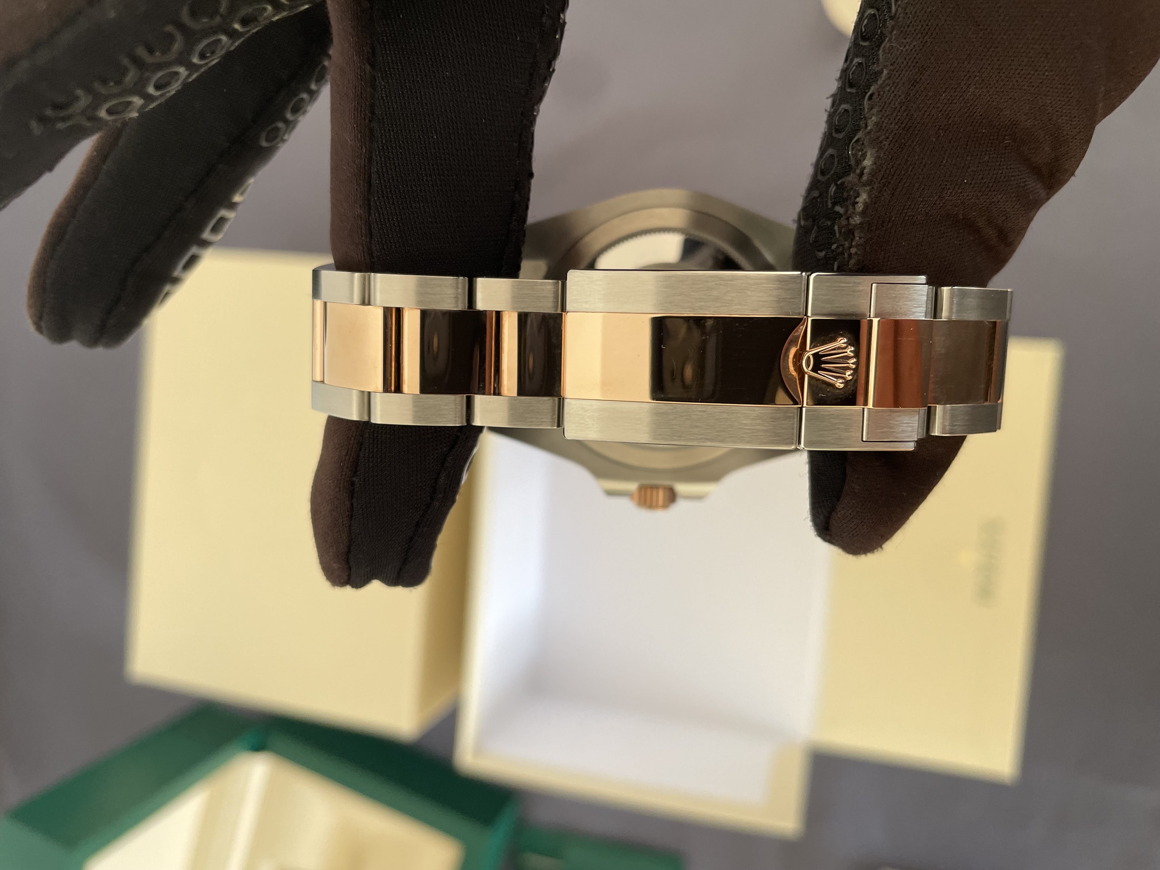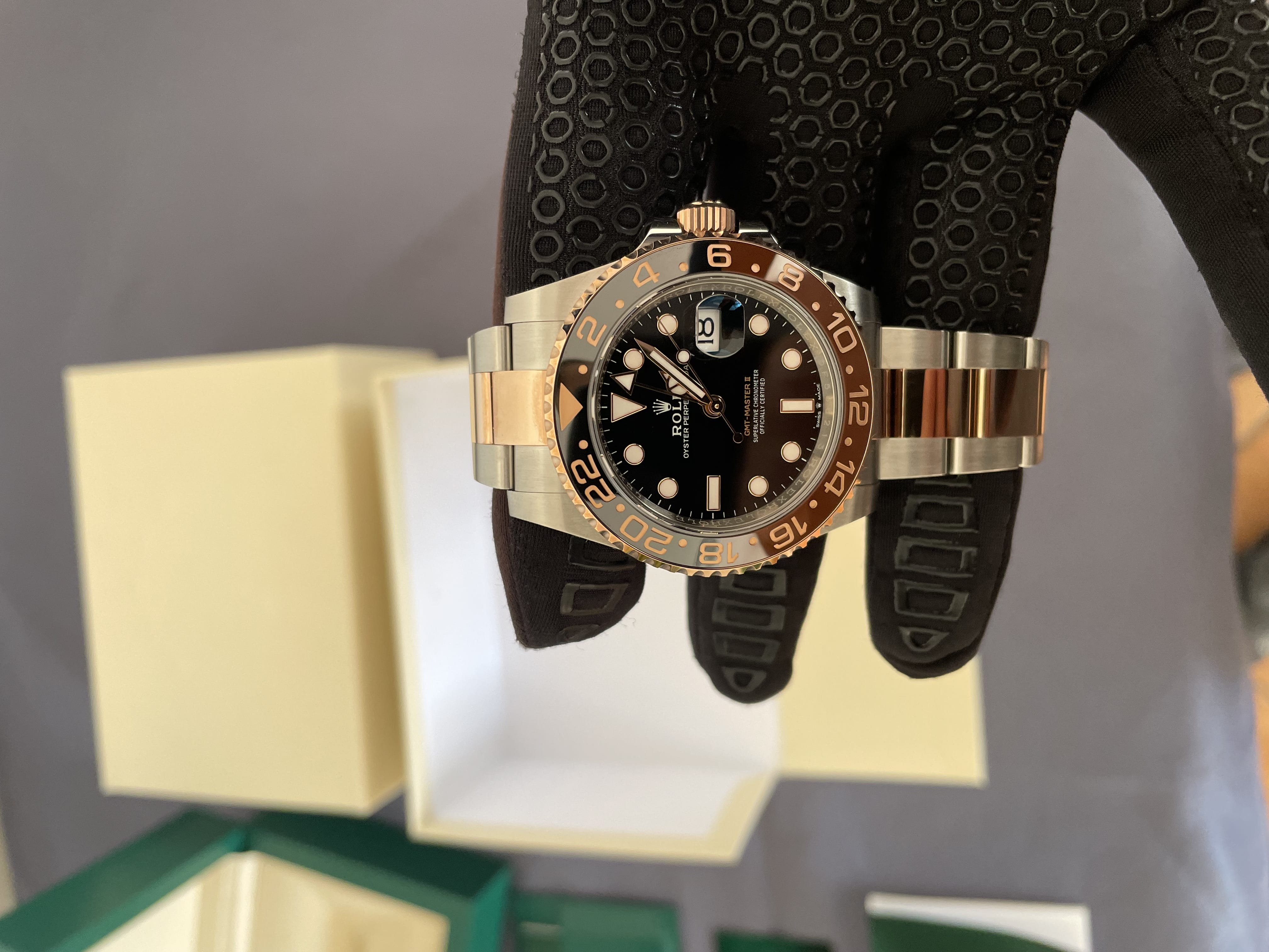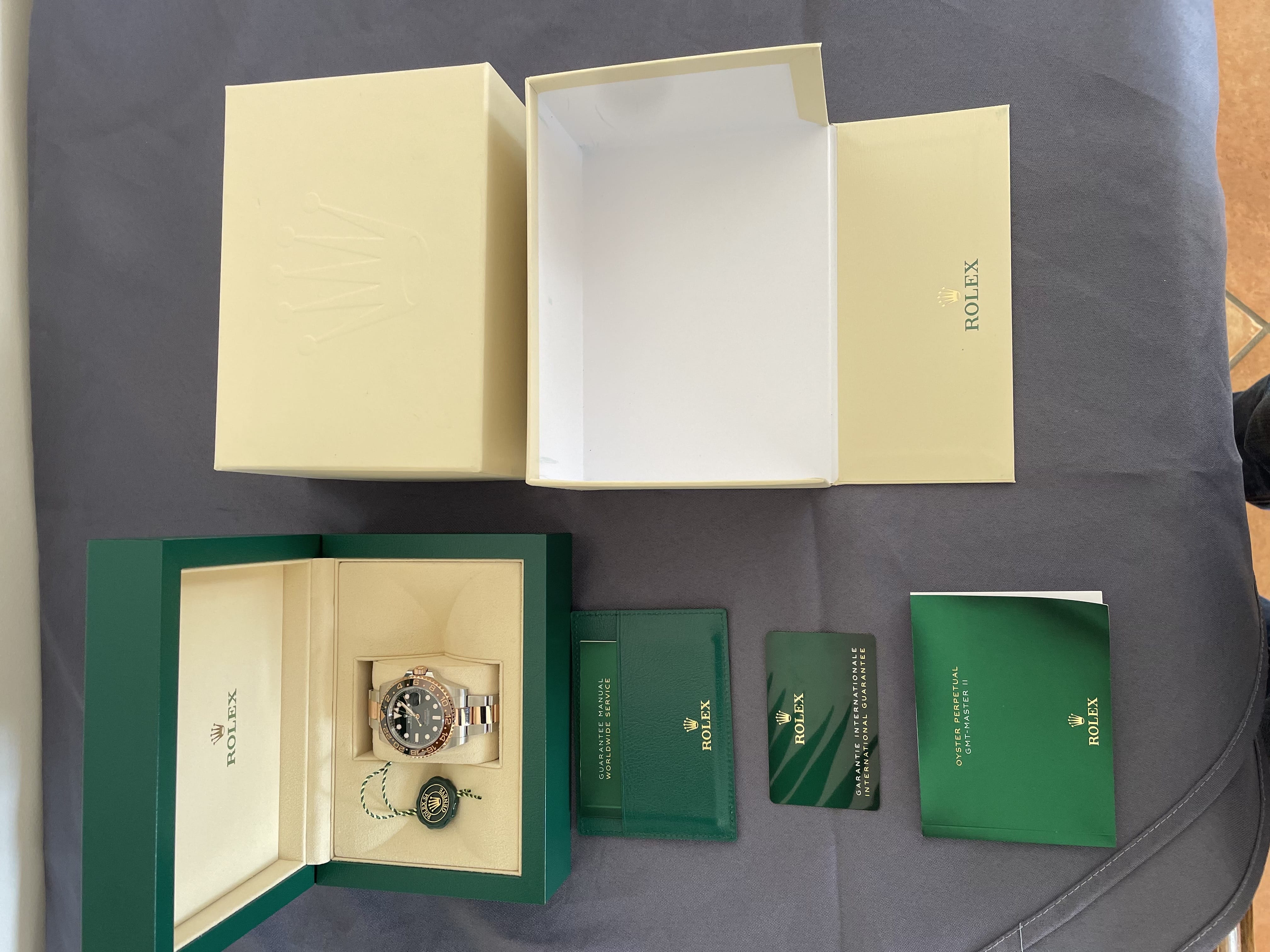 Je vend une montre Rolex, modèle GMT Master II Rolesor Everose. Je l’ai acheté neuve chez un revendeur officiel de la marque en mars 2024. Elle n’a jamais été portée. Je possède la facture d’achat à mon nom, la carte d’identification, la boîte et sur boîte, ainsi que les diverses notices d’emploi.